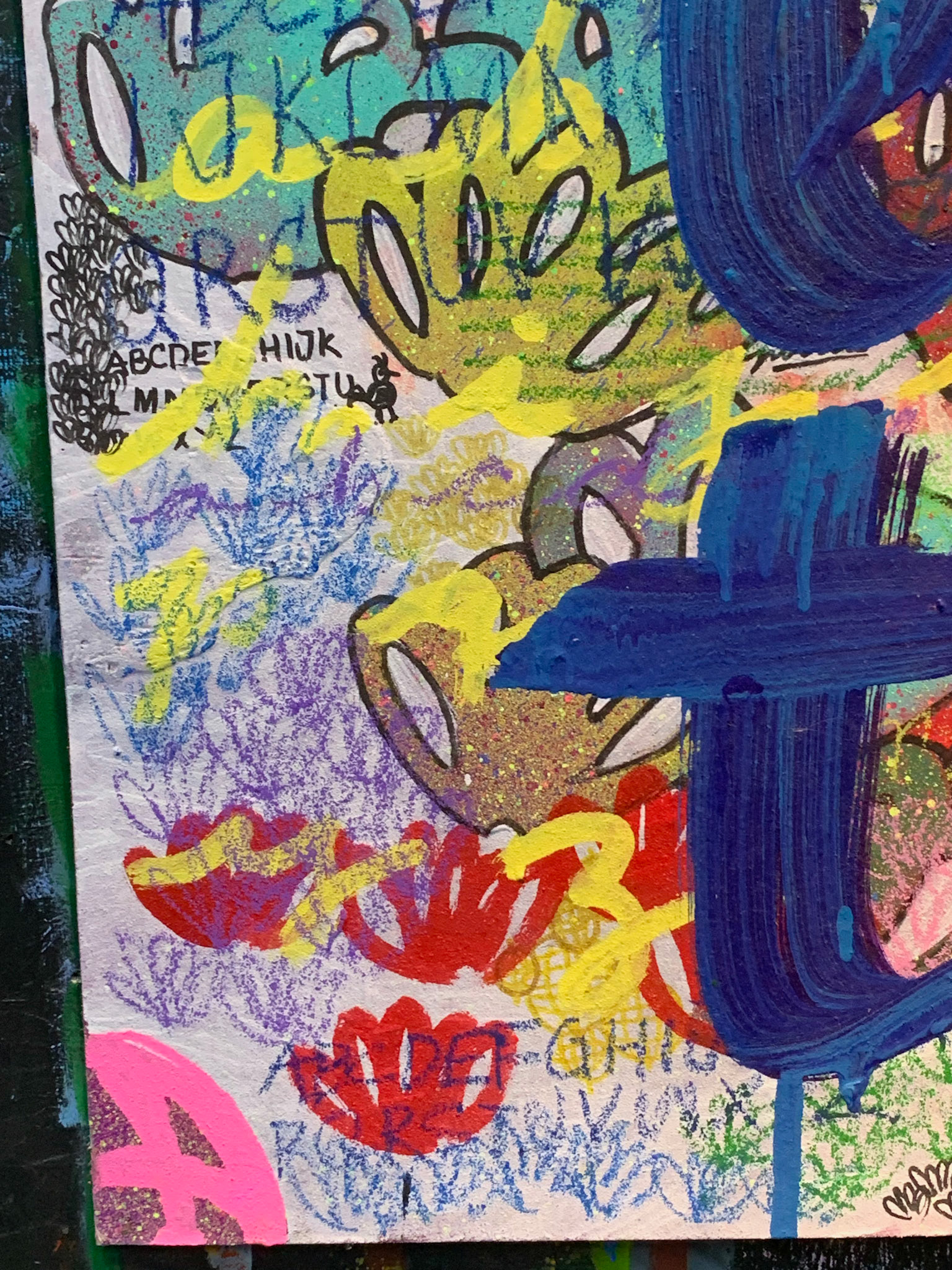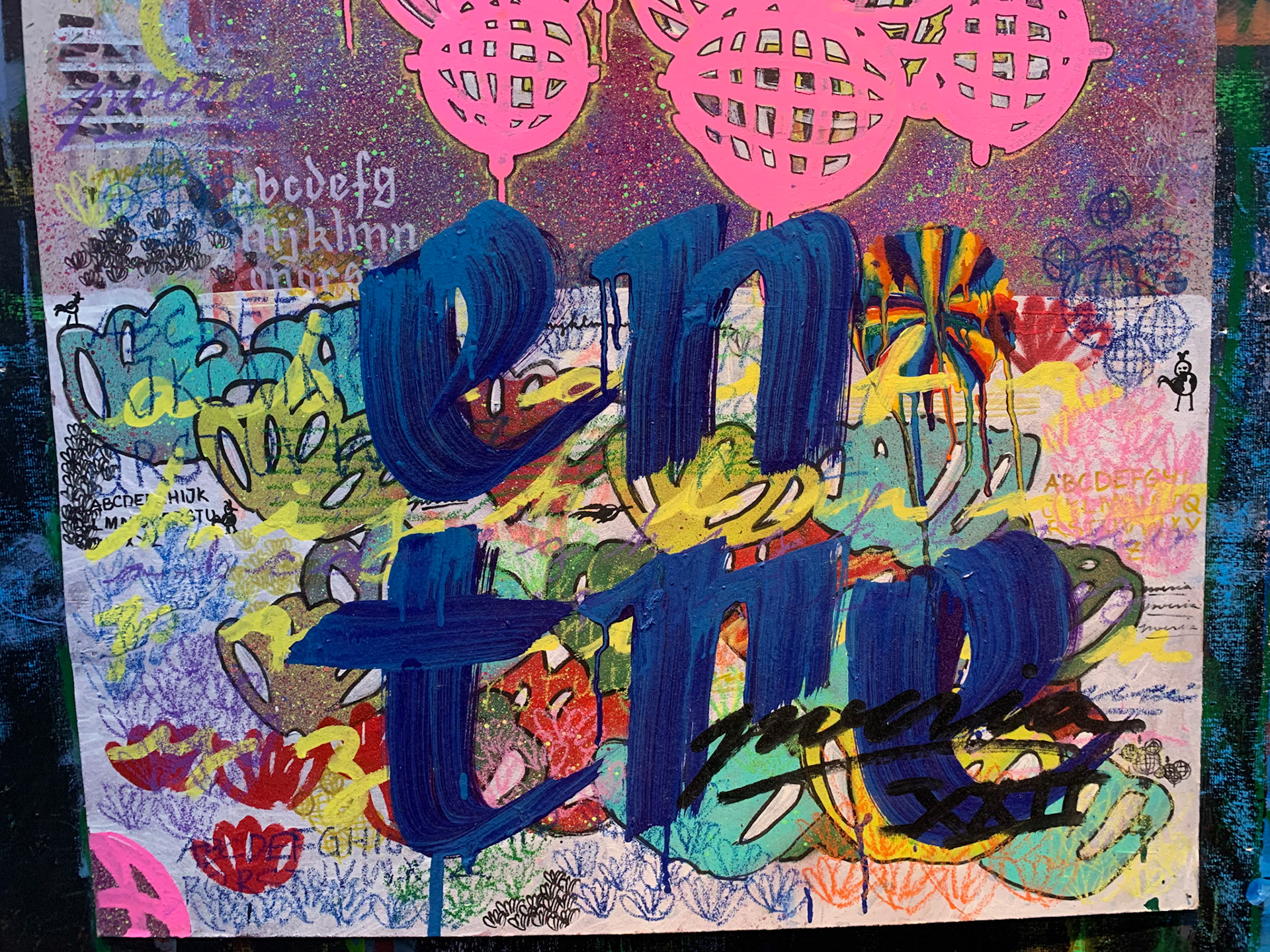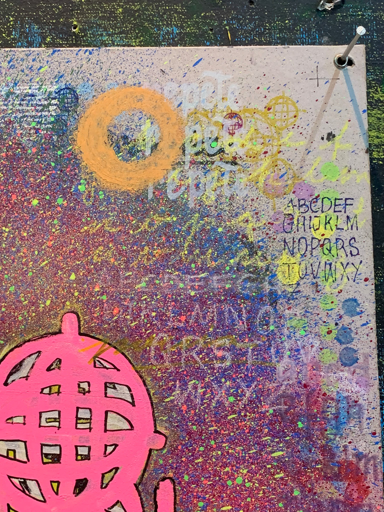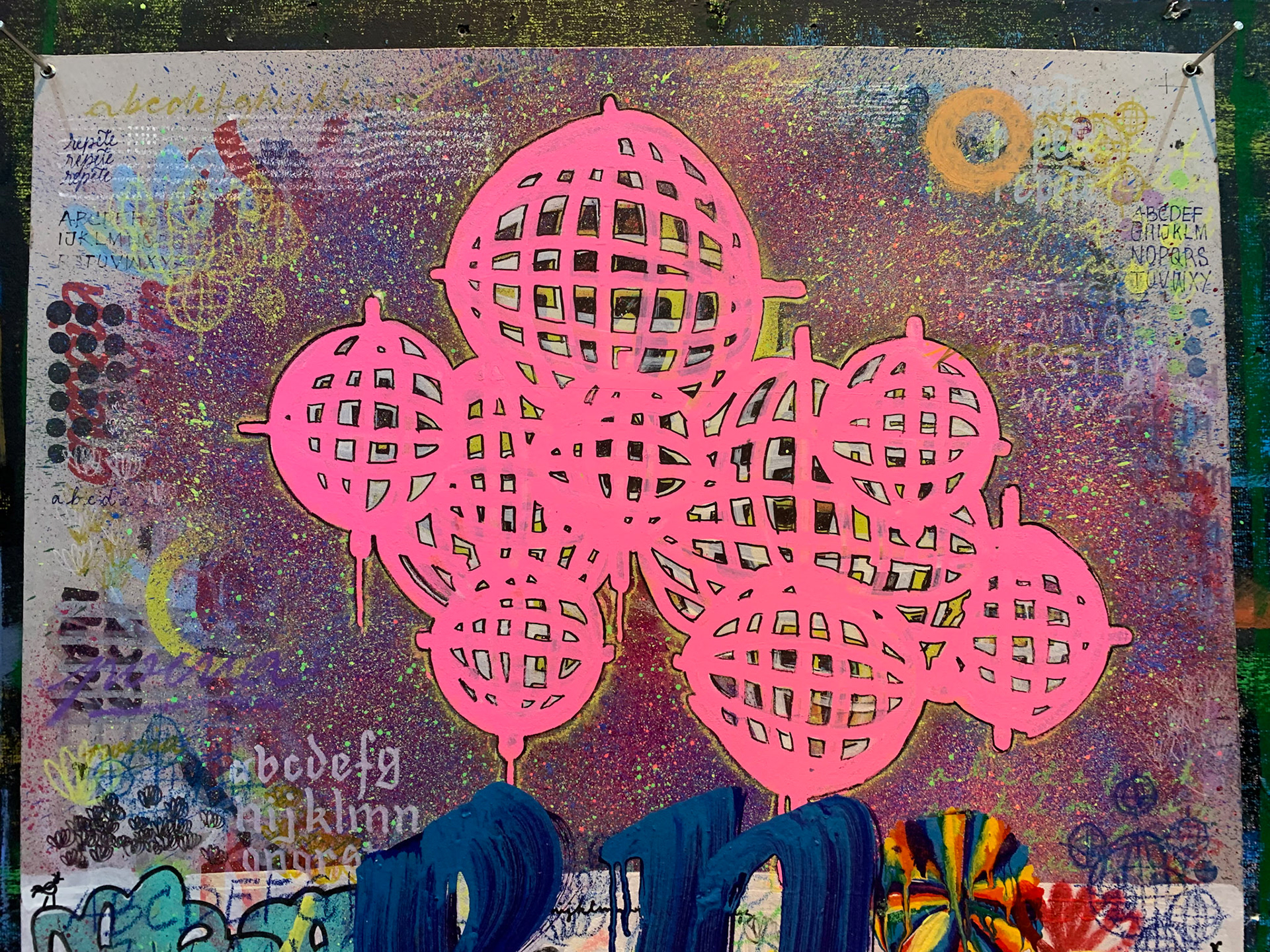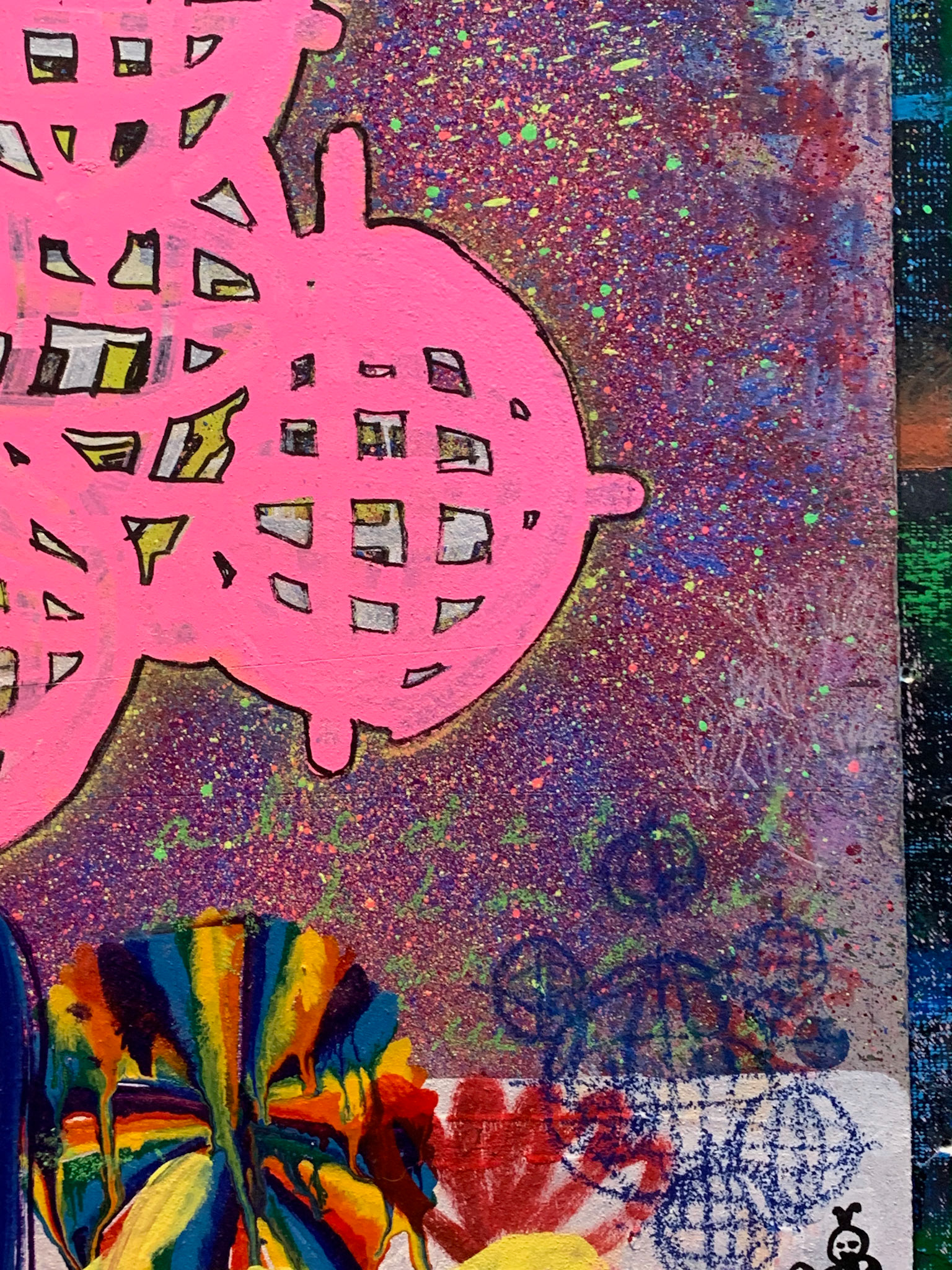 técnica: tinta serigráfica acrílica base água para tecido, spray, giz pastel, tinta de rua, tinta acrilica, grafite e ilhós em papel paraná - 80 x 100 cm