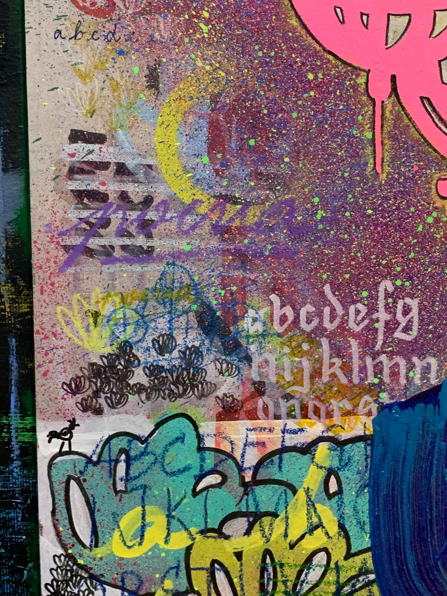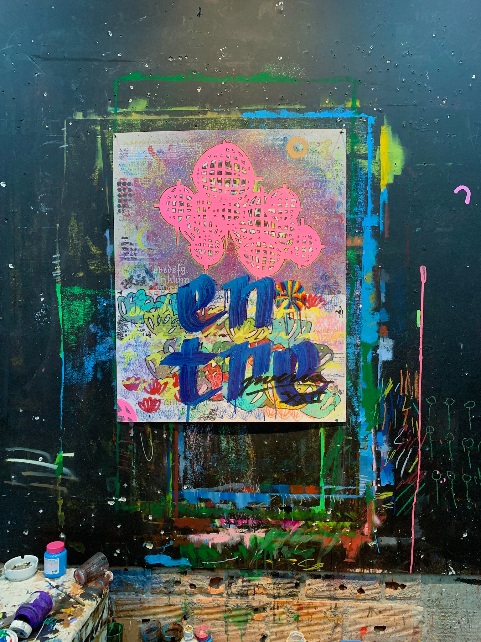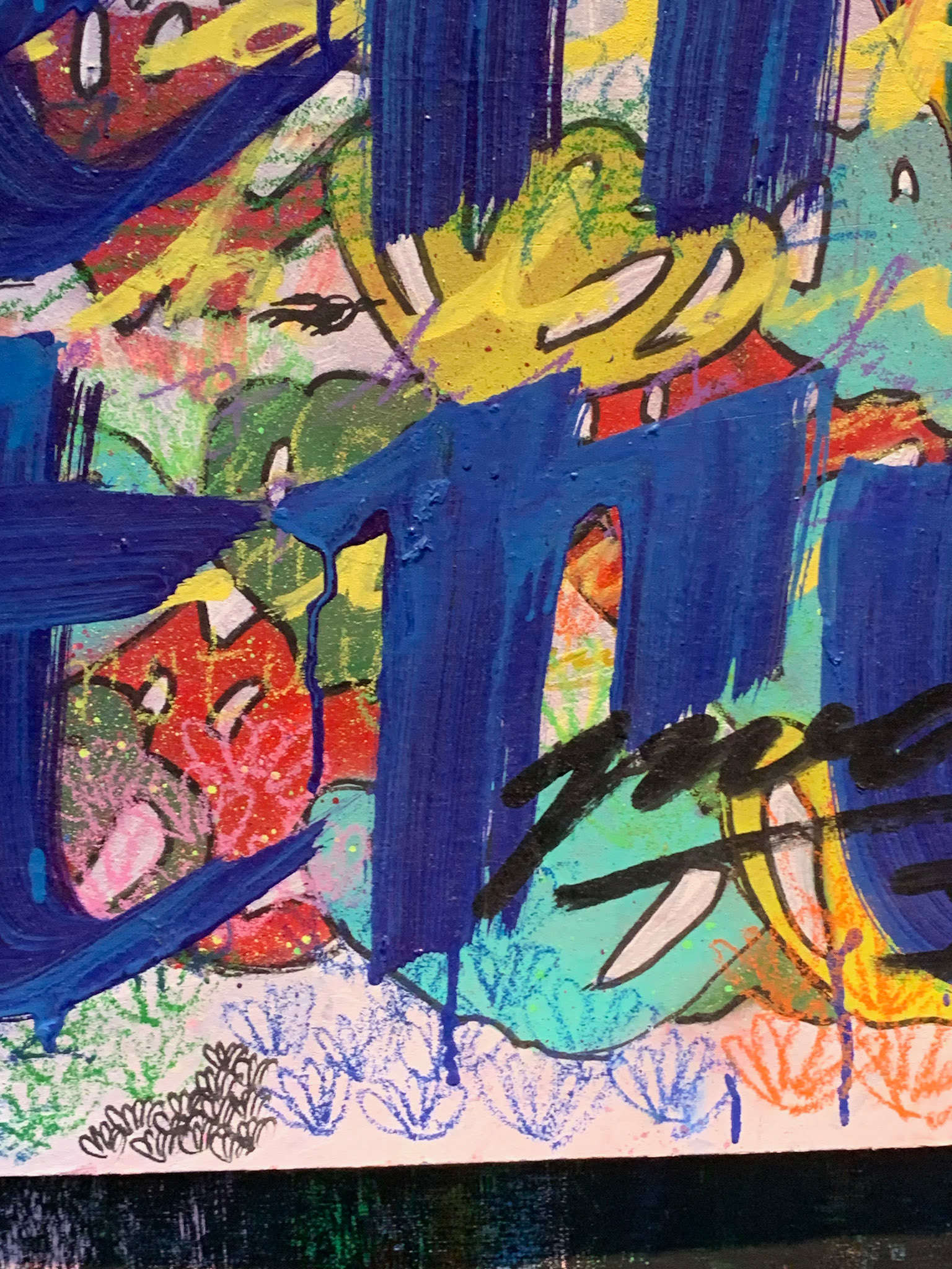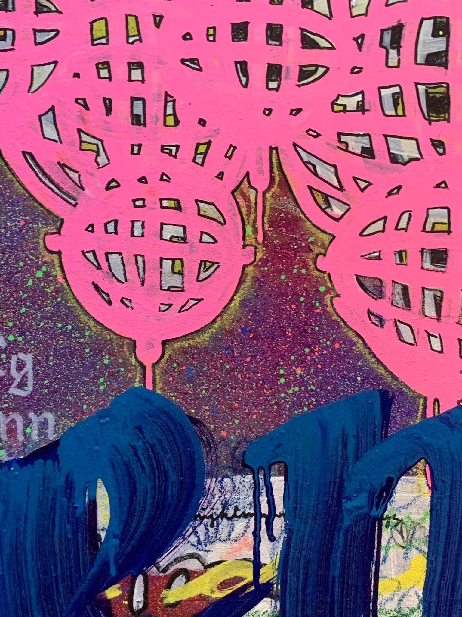 técnica: tinta serigráfica acrílica base água para tecido, spray, giz pastel, tinta de rua, tinta acrilica, grafite e ilhós em papel paraná - 80 x 100 cm