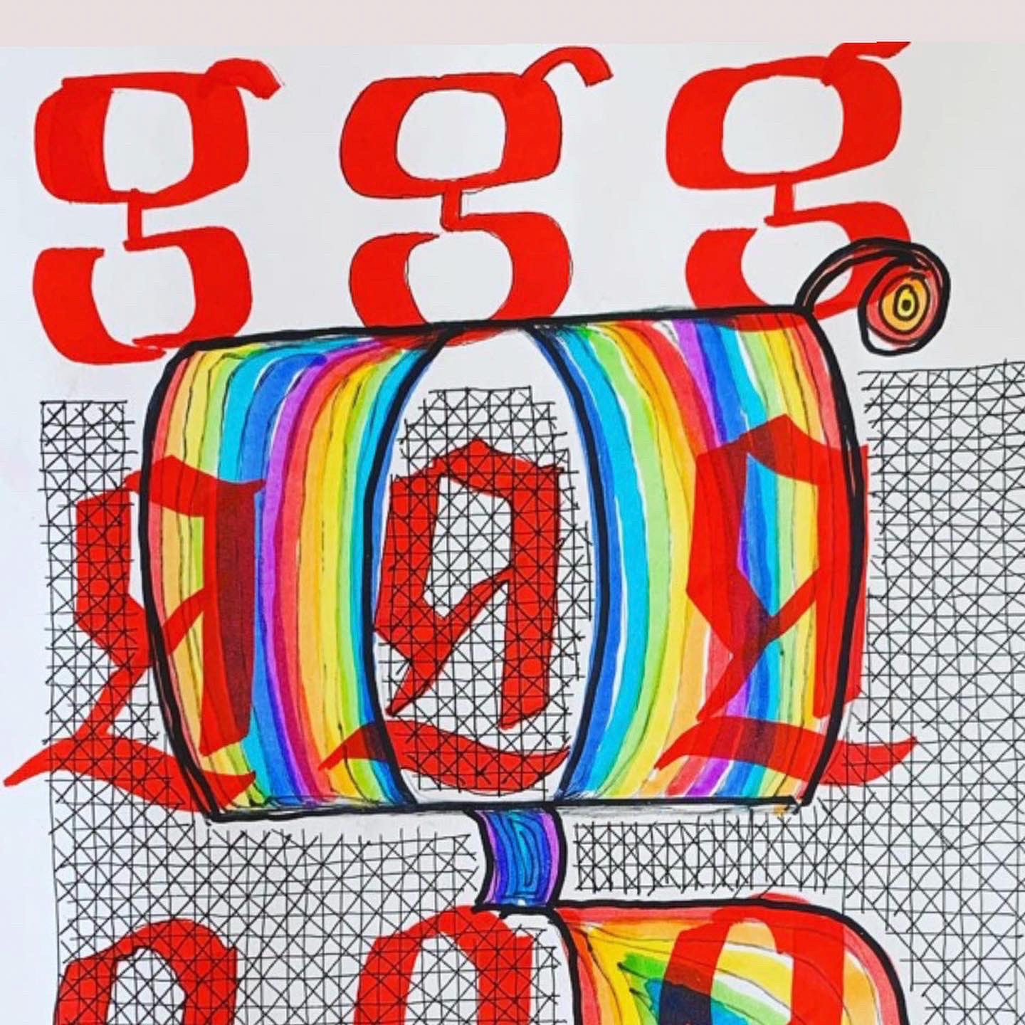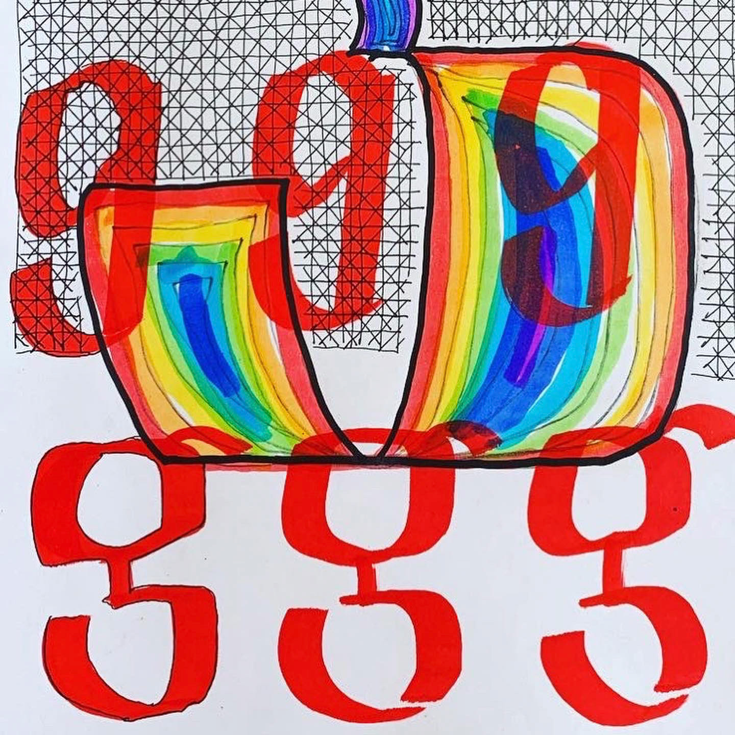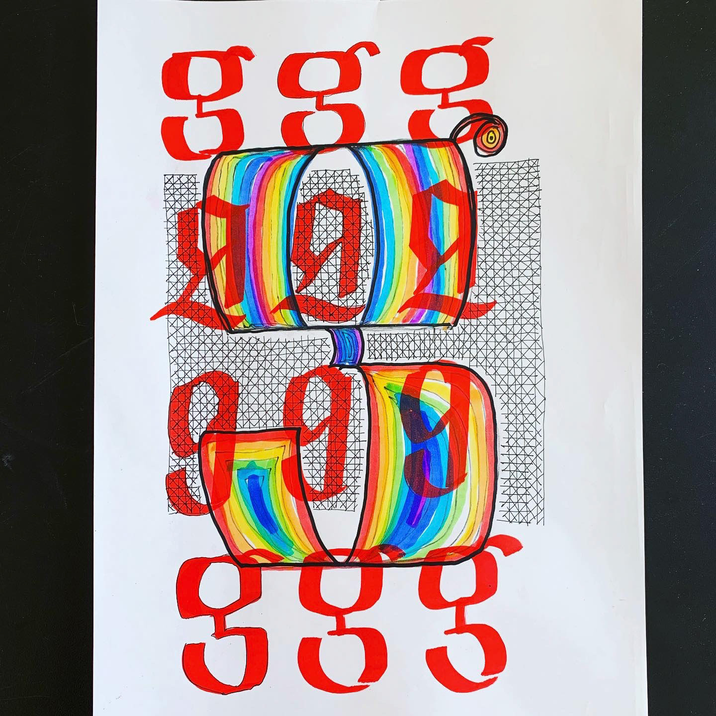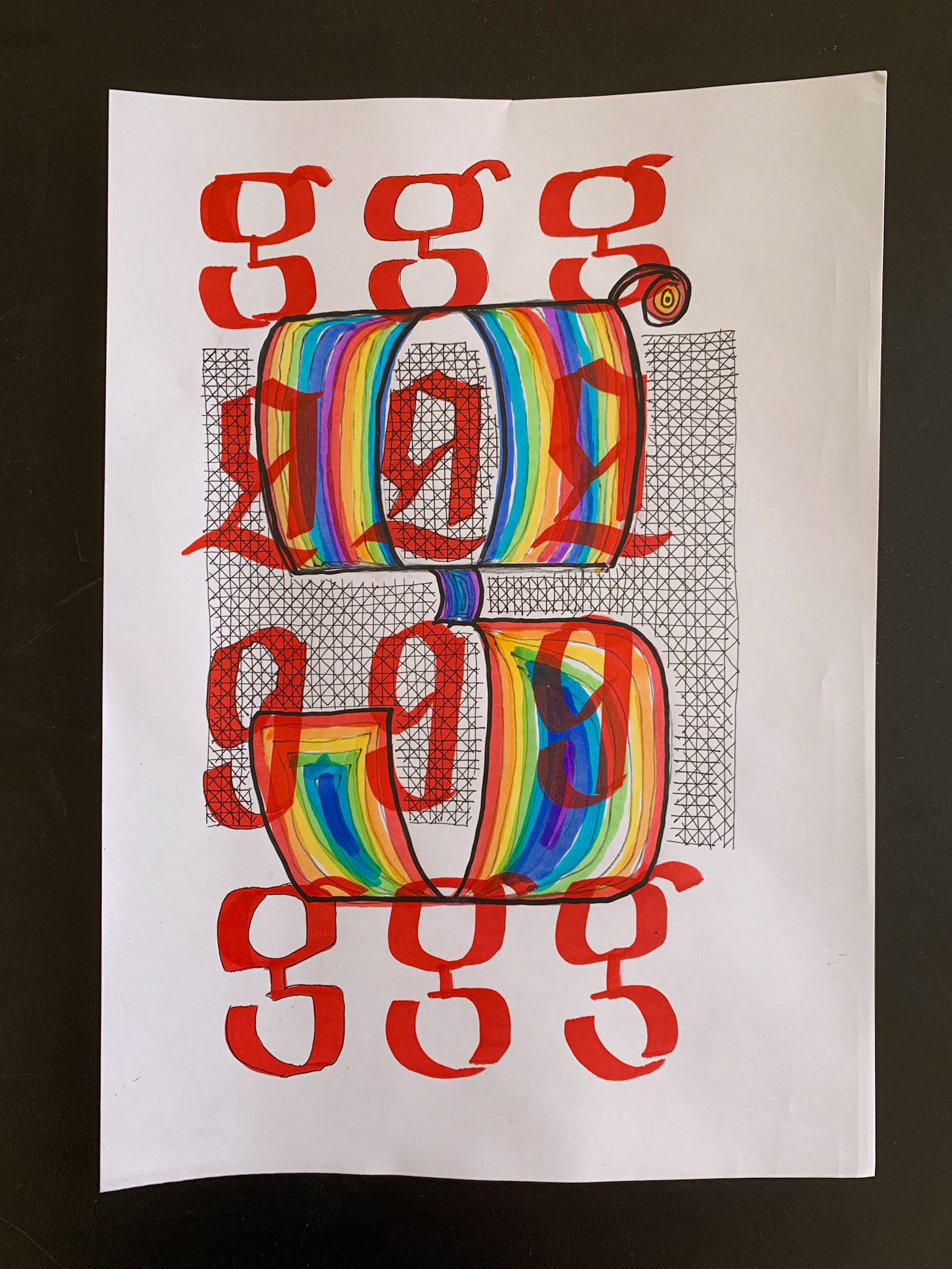 ilustração em caligrafia no formato A4, utilizando canetas aquareláveis, caneta nanquim e marcadores permanentes