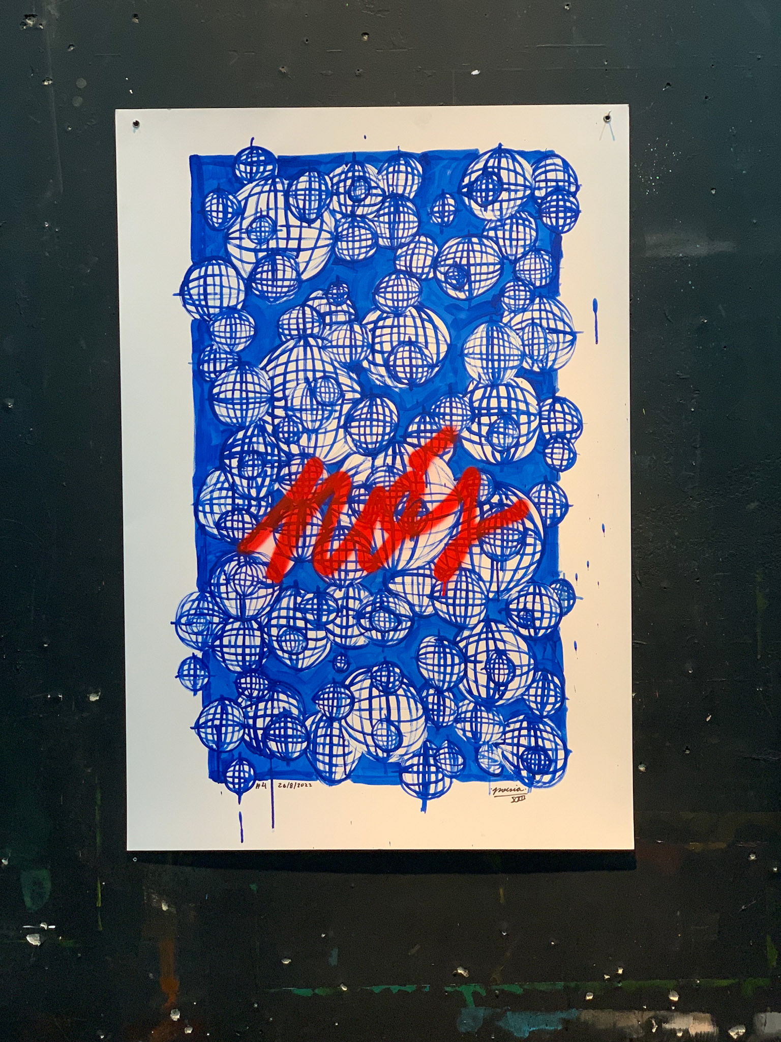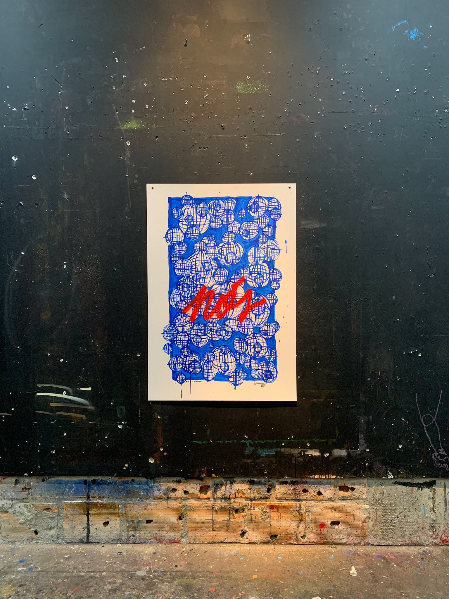 técnica: tinta serigráfica acrílica base água para tecido e ilhós sobre papel duplex - 66x 96 cm