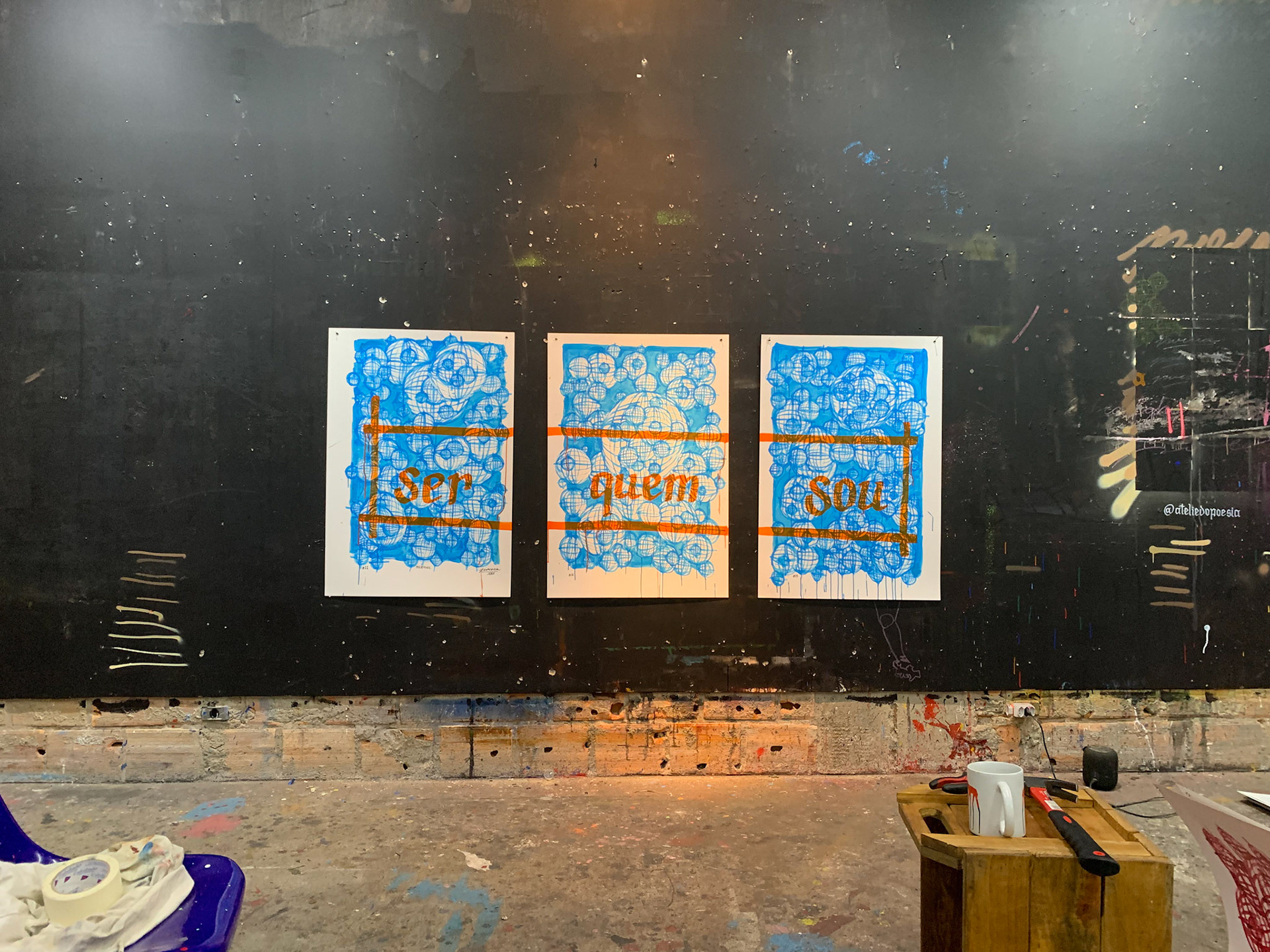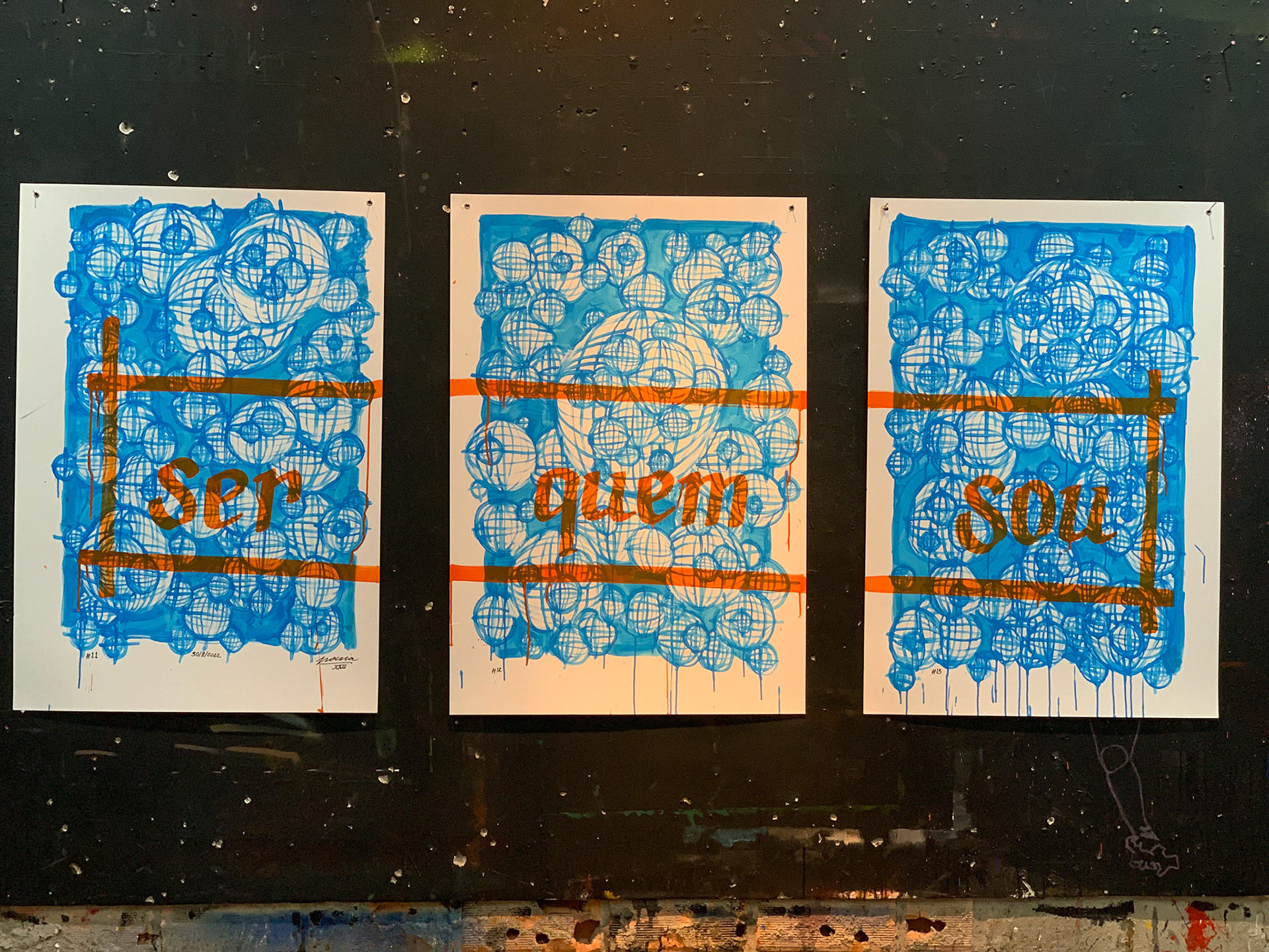 técnica: tinta serigráfica acrílica base água para tecido e ilhós sobre papel duplex - triptico - 66x 96 cm x 3